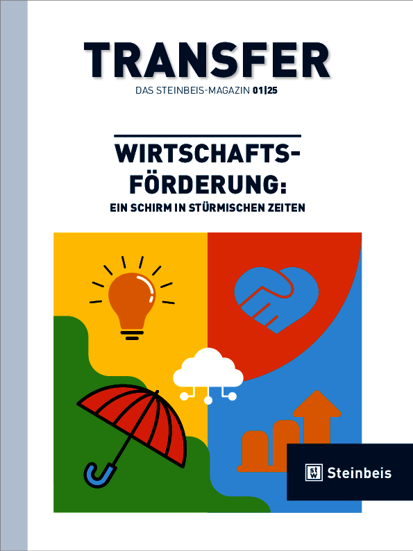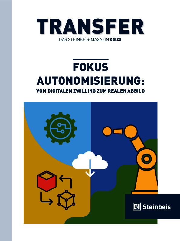 Das Transfer-Magazin gibt Einblick in spannende Projekte, innovative Technologien und aktuelle Entwicklungen im Steinbeis-Verbund. Mit Berichten, Interviews und Analysen zeigen wir, wie erfolgreicher Wissens- und Technologietransfer gelingt – auf Deutsch und Englisch, gedruckt und digital. Jetzt kostenfrei lesen!